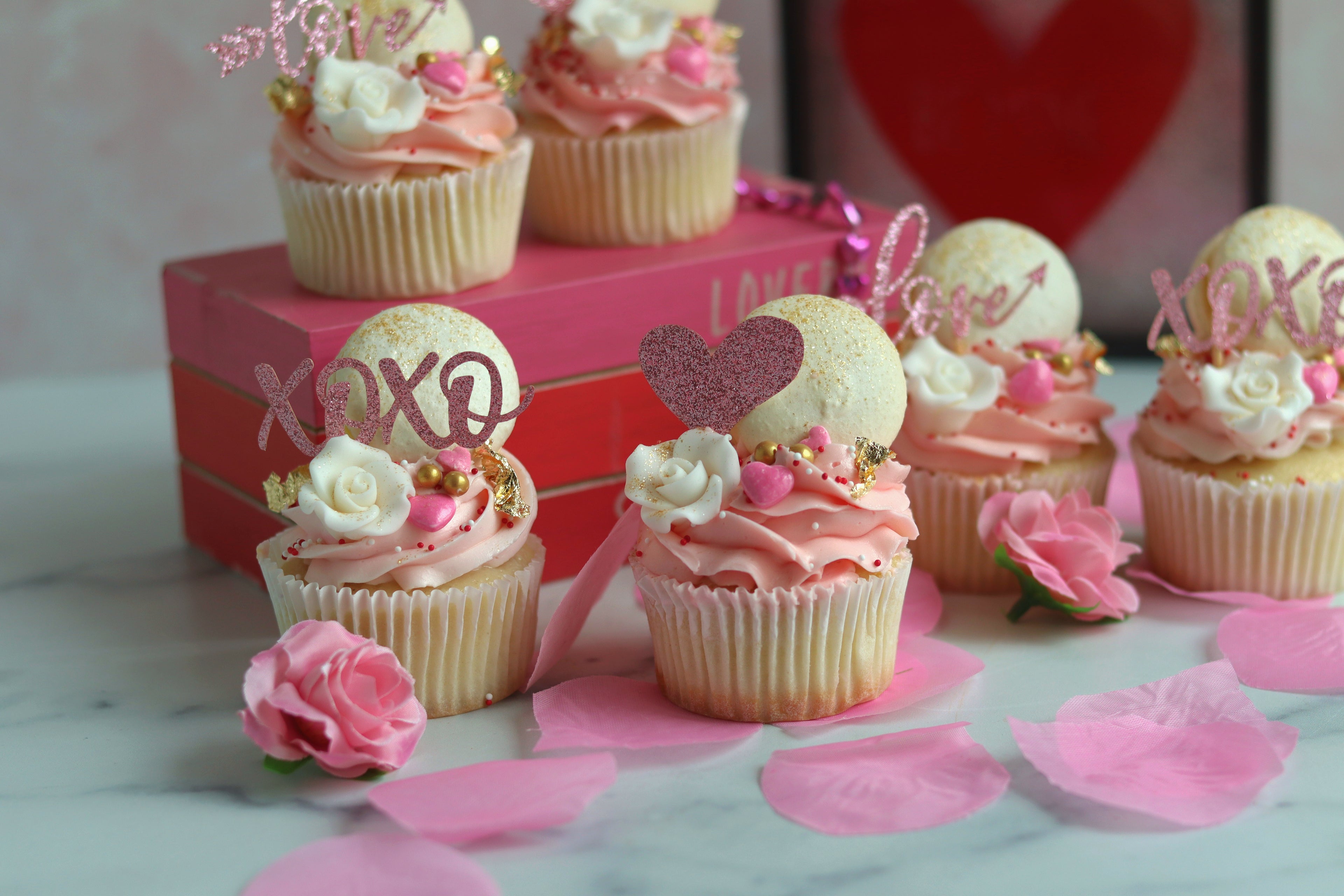 Cupcakes and macarons made locally for easy Valentine’s gifting.